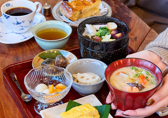 About 10 minutes by bus from TOGA-MIKITA Station on the Senboku Rapid Railway. Washoku(Japanese food) cafe Uoyone, with its pop-up fish illustration on the exterior wall, is a Japanese cafe where you can enjoy delicious fish dishes.