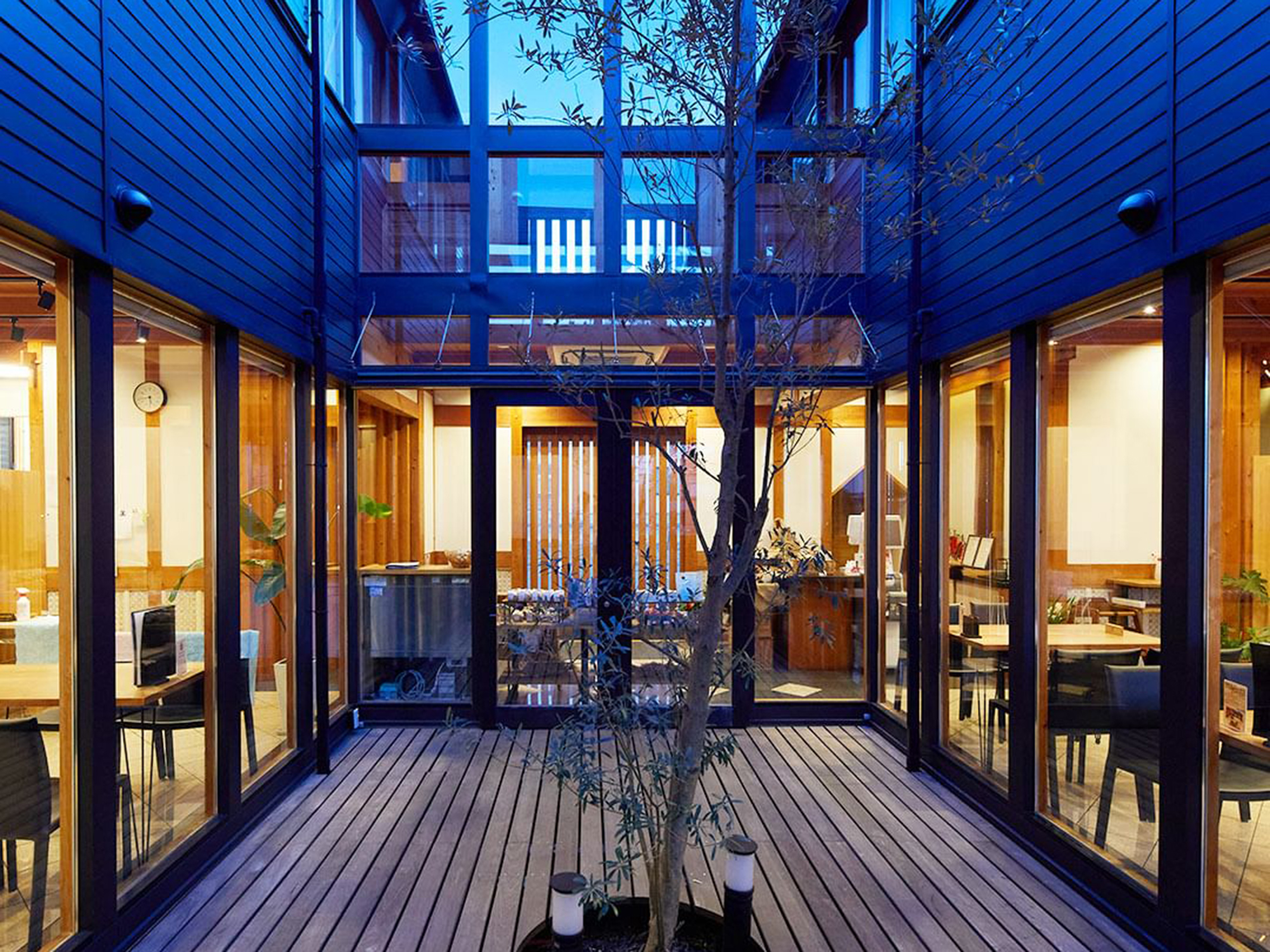The calm interior harmonizes with the quiet residential neighborhood. Guests can enjoy meals and sweets made with generous amounts of seasonal ingredients while gazing at the courtyard located at the center of the café. Whether visiting with family, friends, or someone special, this is a place to spend a relaxing and pleasant time.