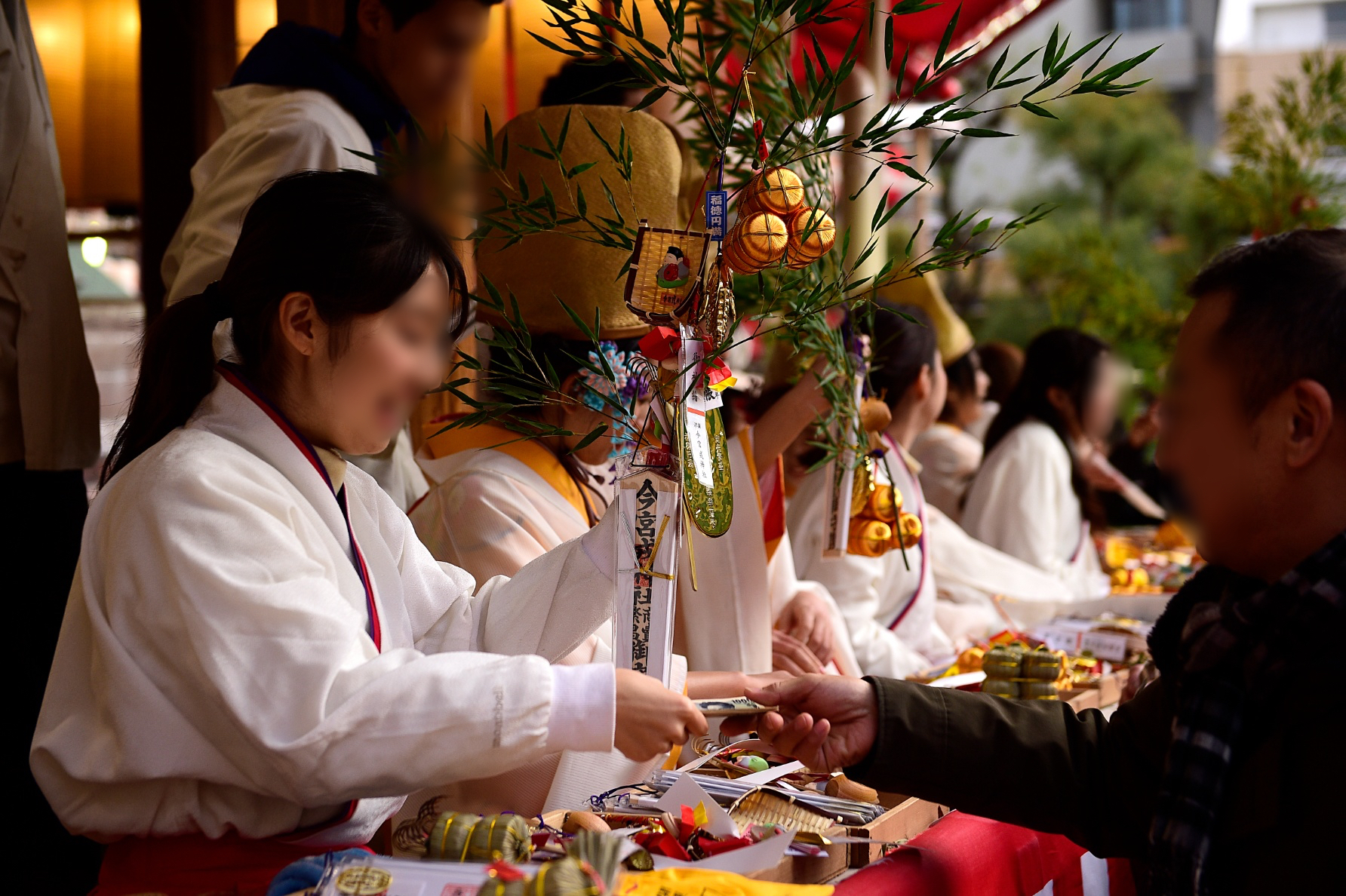 섣달 그믐밤이 되면 어디선가 사람들이 모여 문 앞은 사람들로 가득 차요. 자정 정각의 북이 울리면 일제히 참배 박수가 울리고 한 해의 행복을 기원하는 사람들로 경내가 넘칩니다. 사흘간의 참배자 수는 매년 200만 명. 오사카를 비롯한 많은 사람들의 마음을 사로잡고 있습니다.