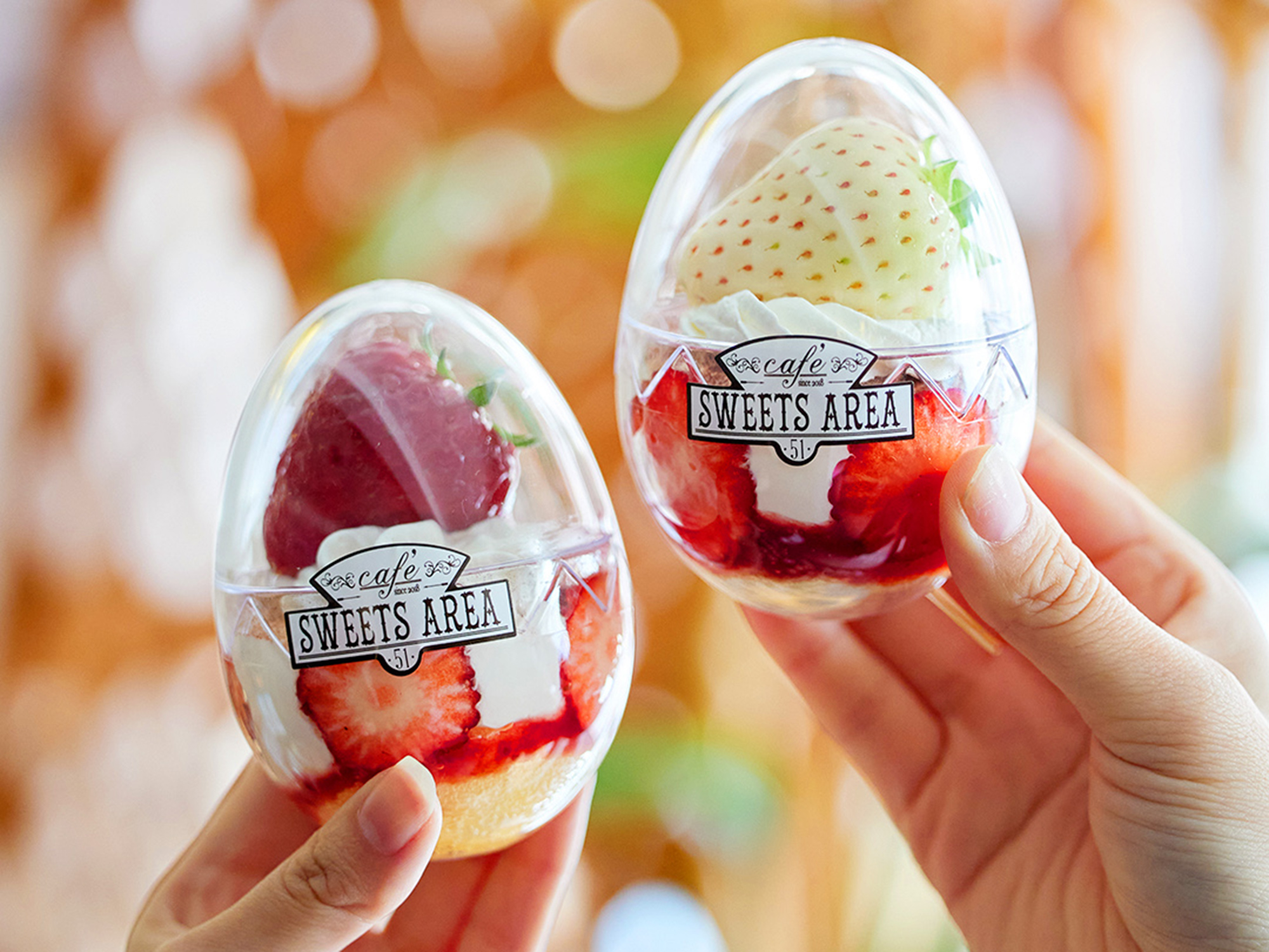 귀여운 달걀 모양 컵에 담긴 딸기 티라미수입니다. 센슈산의 크고 탐스러운 딸기를 사용해 비주얼부터 압도적인 인상을 줍니다. 딸기는 연분홍빛 「아와유키」, 붉은색의 「베니홋페」와 「요츠보시」, 그리고 한정으로 선보이는 하얀 딸기 「텐시노 이치고」까지 품종별로 세심하게 구분해 사용하고 있습니다. 모든 딸기가 당도가 매우 높아 한 번 맛보면 잊을 수 없는 풍미를 자랑합니다. 에그 컵 티라미수는 온라인 판매를 하지 않으므로, 매장에서 발견하신다면 바로 구매하시는 것을 추천드립니다.