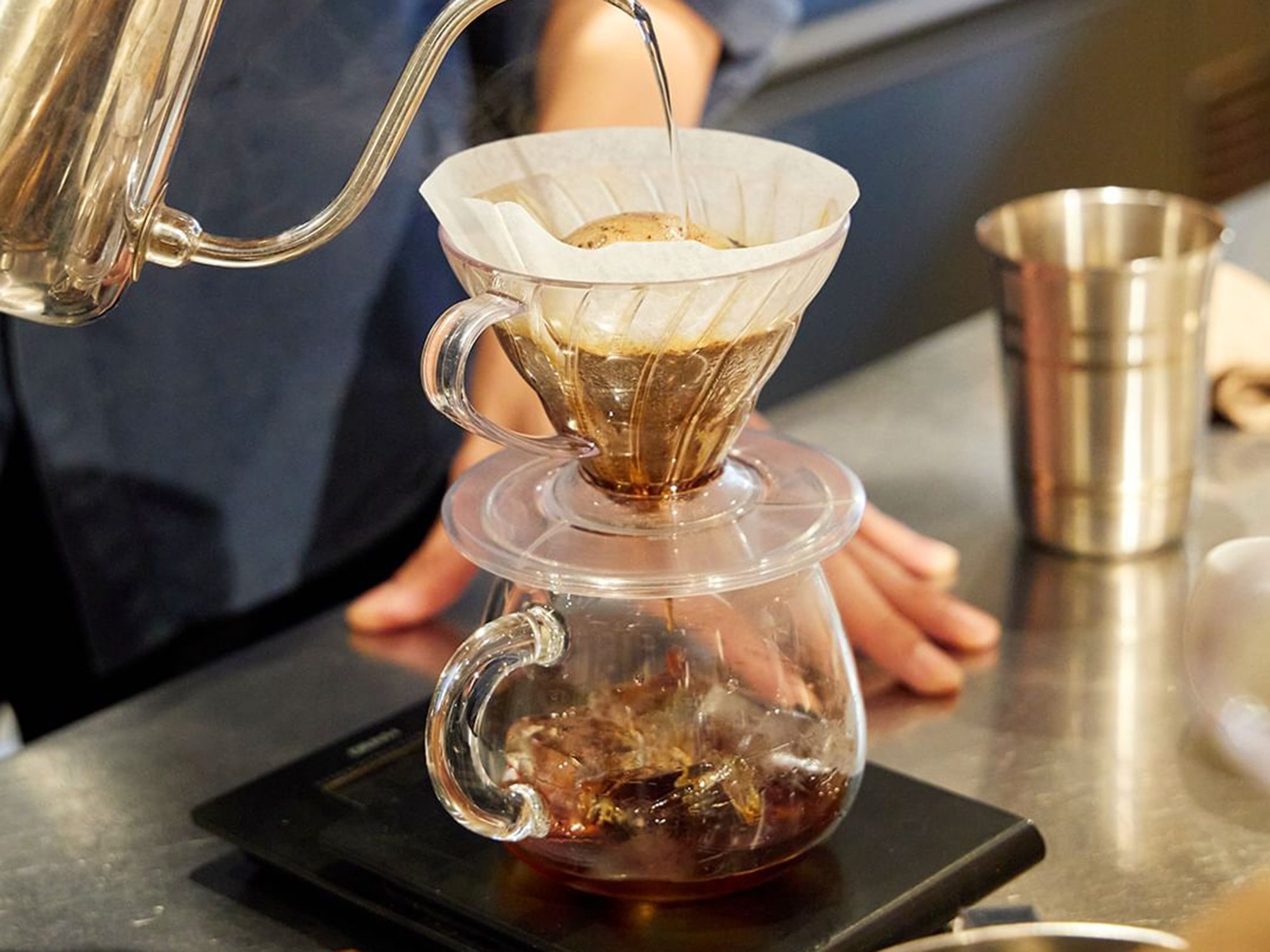 난바역에서 도보로 약 5분 거리, 우드 & 화이트의 외관이 인상적인 「Vourke(보크)」는 엄선된 커피와 수제 디저트를 즐길 수 있는 '나만 알고 싶은' 아지트 같은 카페입니다.