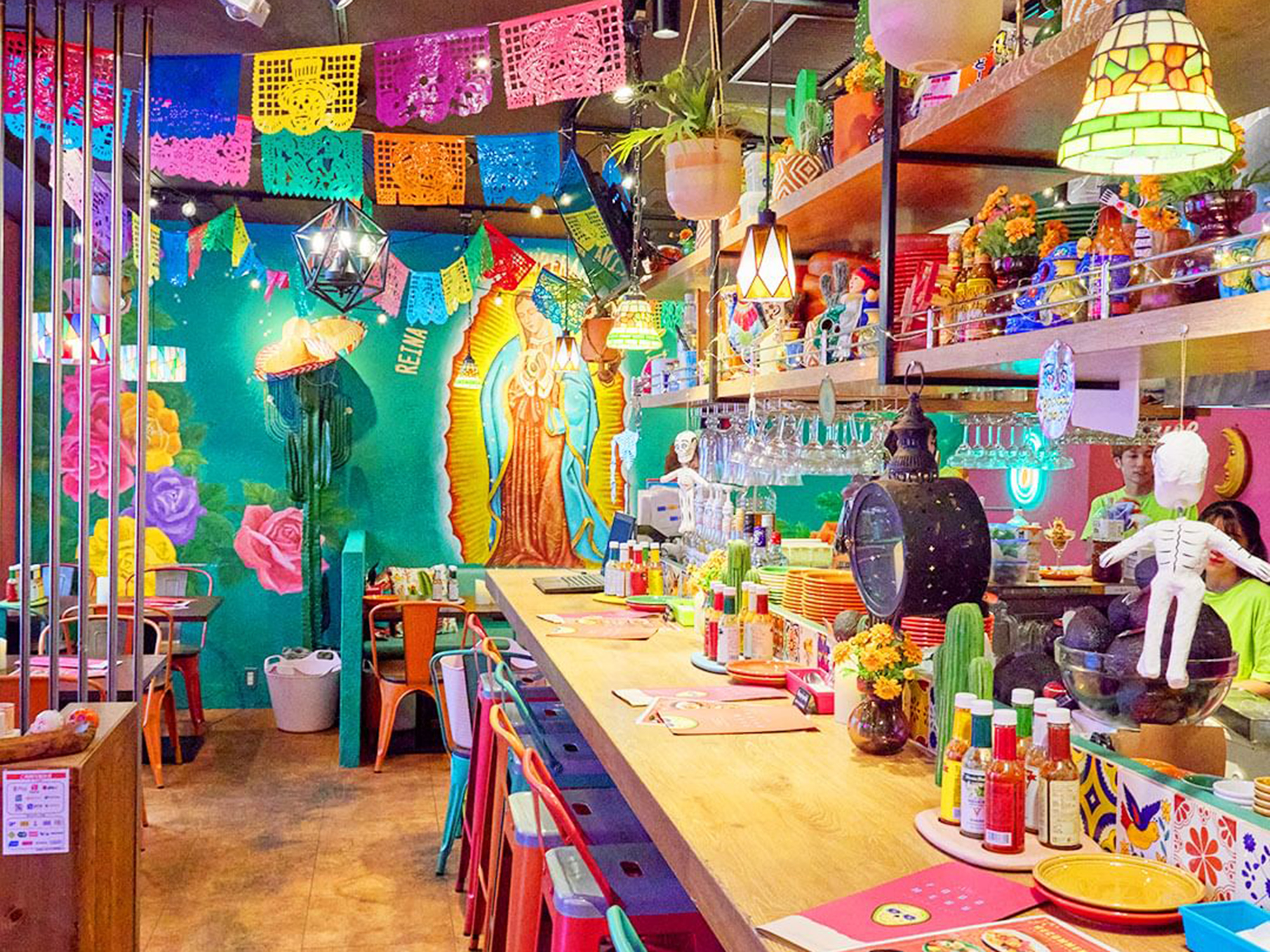귀여운 핑크색 외벽과 네온사인이 인상적인 이곳은, 안으로 들어서면 멕시코 전통 축제인 '망자의 날'을 재현한 색다른 세계가 펼쳐집니다. 알록달록하고 톡톡 튀는 인테리어와 멕시코 감성의 소품들로 가득해, 외관부터 내부까지 어디서 찍어도 인생샷을 건질 수 있는 포토제닉한 공간이 마음을 설레게 합니다.