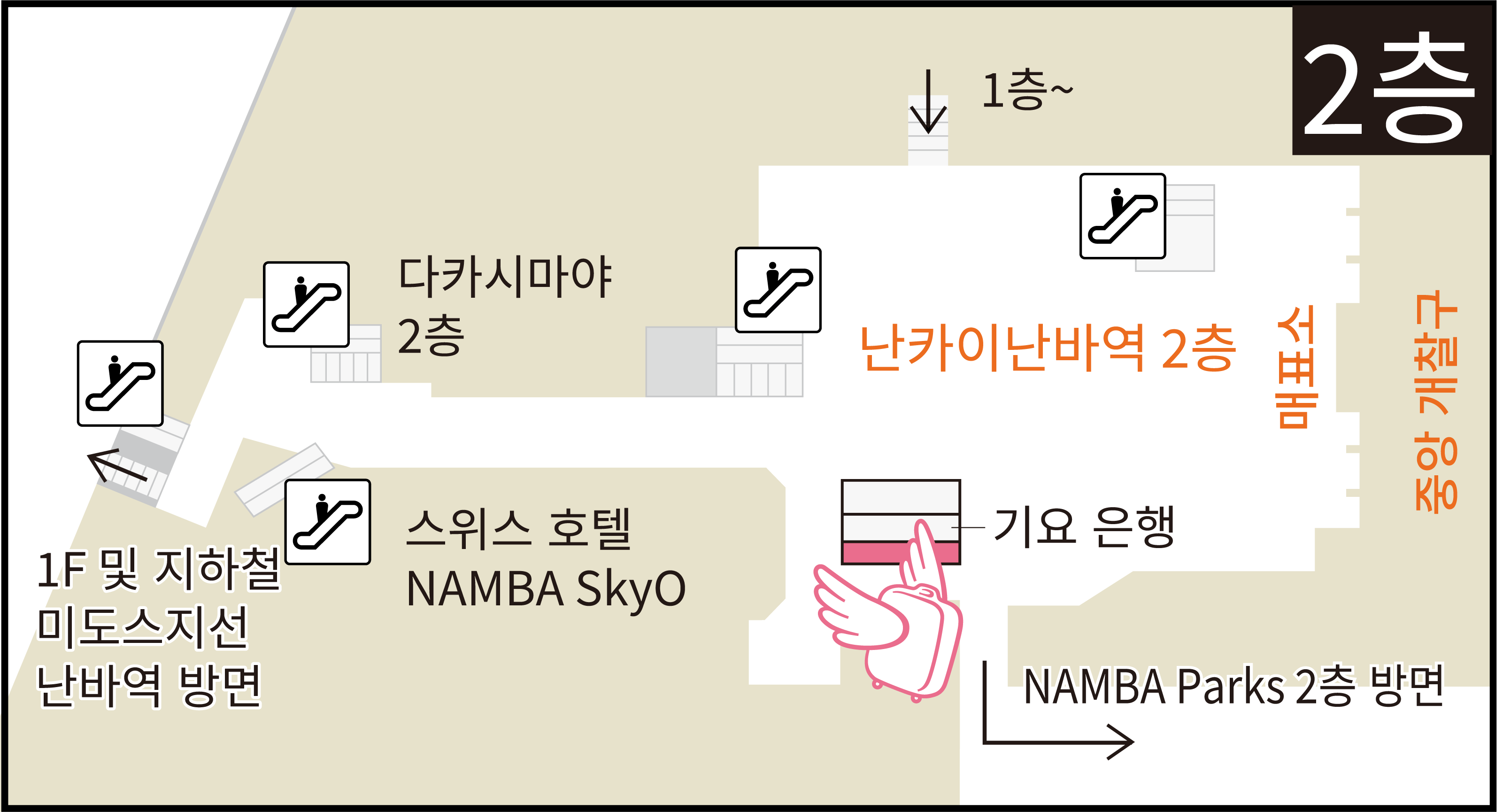 난카이난바역 2층 중앙개찰구 앞(개찰구 밖) - ●영업시간 9:00-21:00