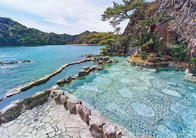 我們向您推薦海濱溫泉--休暇村紀州加太。該溫泉以其柔膚功效而聞名,被譽為 「美肌溫泉」。進入 「無邊際浴池」,溫泉和大海彷彿連接在一起。有機會的話一定要嘗試一下。
